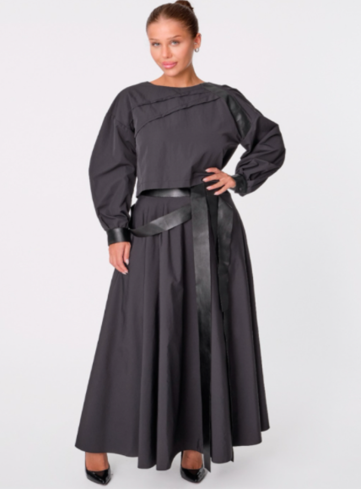ارتقي بأناقتك مع هذه الجيبه السوداء الطويله المصمم ليمنحك حضورًا راقيًا بلمسة جريئة. يجمع بين البساطة الفاخرة والتفاصيل العصرية، مع أكمام منفوخة، حزام خصر عريض من الجلد، وتفاصيل أنيقة تضيف للقطعة طابعاً معاصرًا لا يُقاوم.