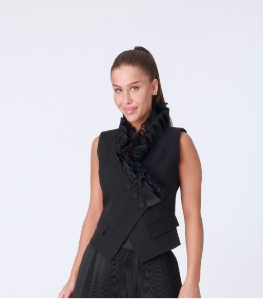 أضيئي حضورك بإطلالة أنثوية حالمة تجمع بين الرقة والجرأة في آنٍ واحد، مع هذه التنورة السوداء المميزة. تصميمها الفريد بطبقات التول الشفافة يضفي إحساساً بالحركة والانسيابية، بينما يضمن اللون الأسود عمقًا كلاسيكيًا يليق بكل المناسبات الراقية.