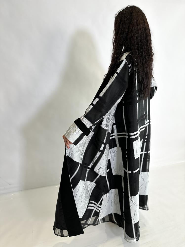 عباية صيفية ذات طابع مميز باللونين الابيض والاسود