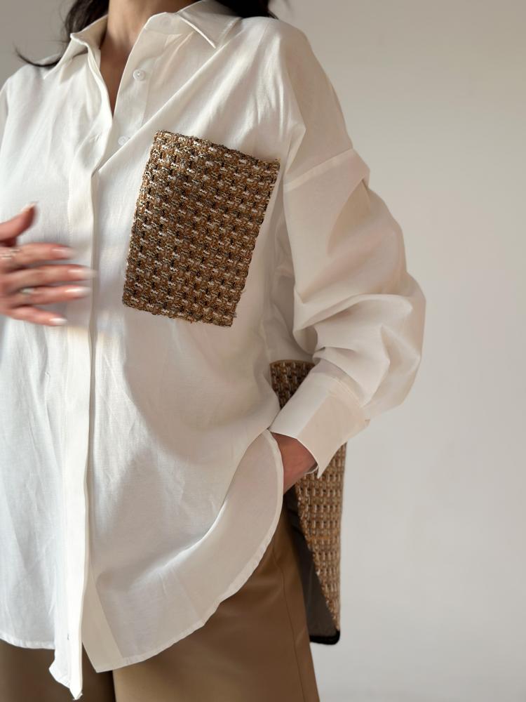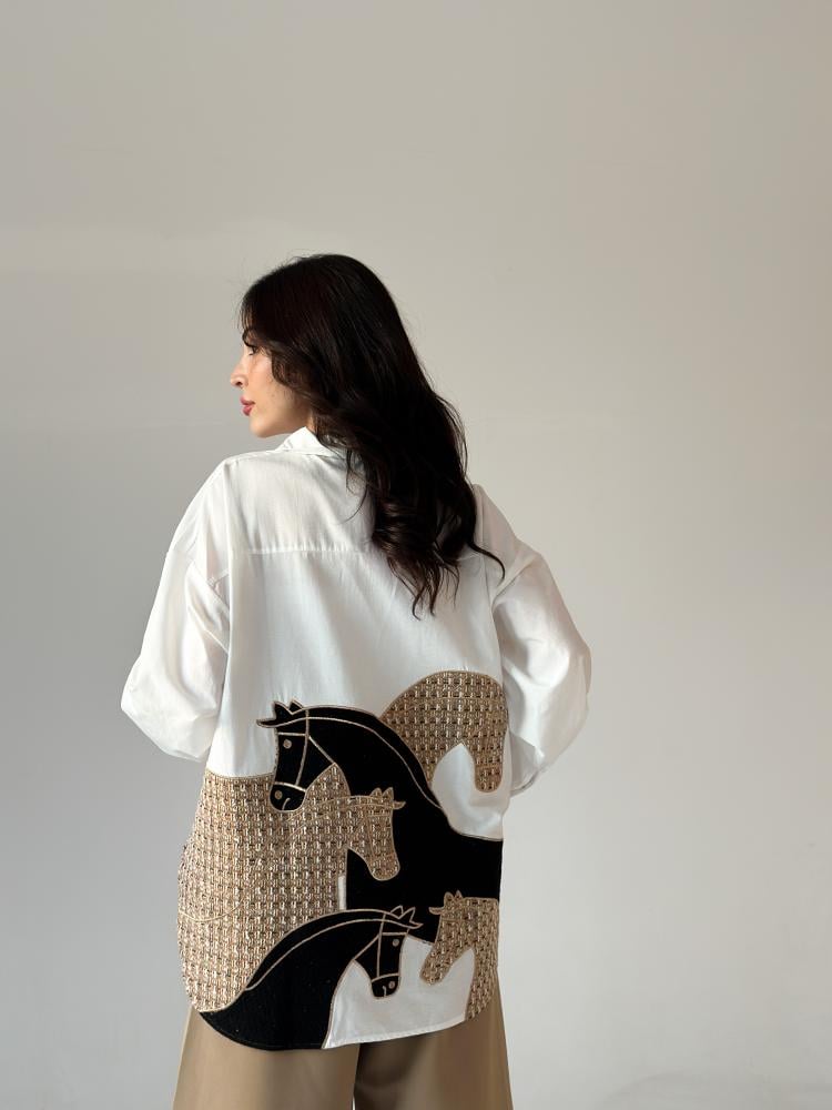 قميص أبيض راقي تطريز خيول من الخلف