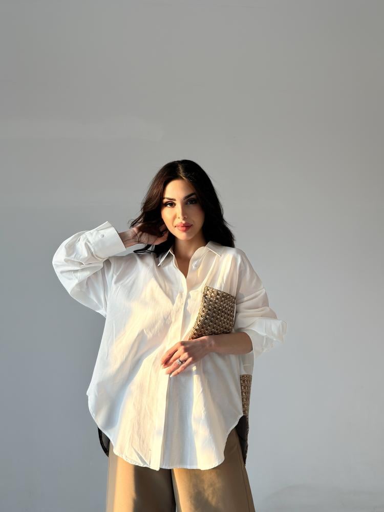 قميص رسمي أنيق بتفاصيل مطرّزةأضيفي لمسة من الرقي والأصالة لإطلالتك مع هذا القميص الأبيض المصمم بأسلوب رسمي أنيق، يلفت الأنظار بتطريز خيول مميز في الخلف. تصميمه الكلاسيكي بياقة وأزرار أمامية يجعله قطعة أساسية تناسب مختلف المناسبات، سواء كانت رسمية أو كاجوال راقية.